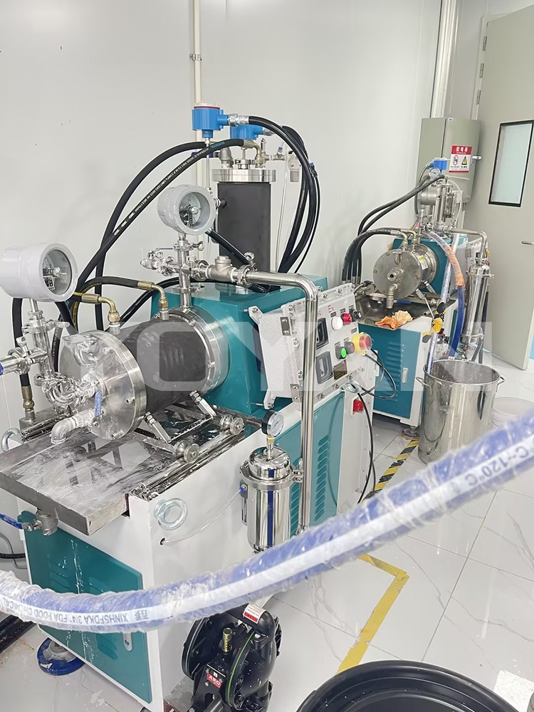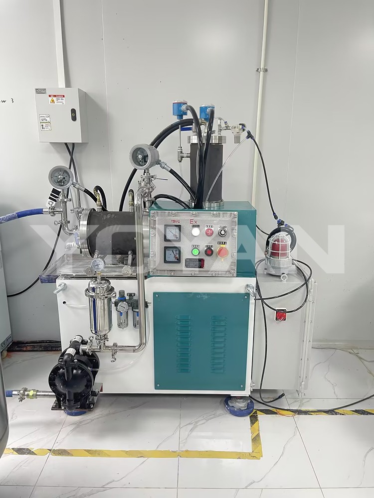 广东某新材料科技有限公司2L实验室纳米砂磨机、15L高端棒块式陶瓷纳米卧式砂磨机调试成功