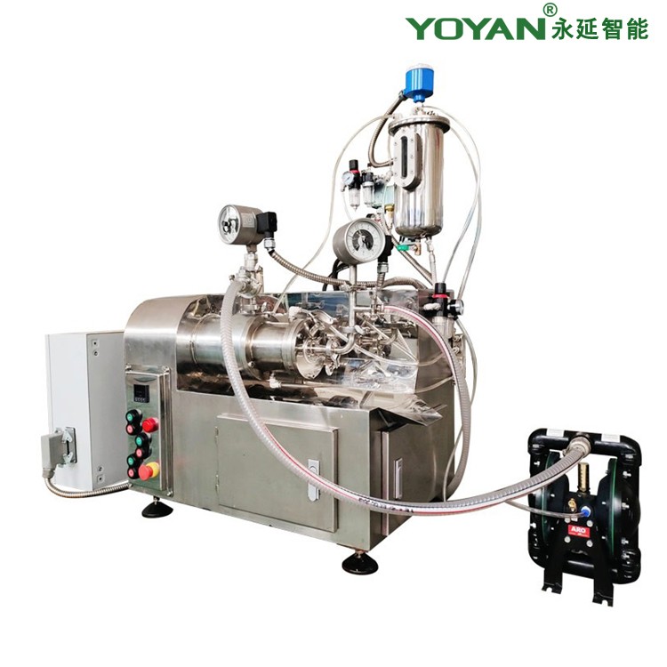 实验式系列砂磨机广泛应用于小批量物料的循环研磨、 配方研究, 研磨腔容积有0.2L、 0.3L、0.5L、1.0L,精密可靠的机械密封 , 避免空气混入,防止气泡产生和溶剂挥发,减轻环境污染。