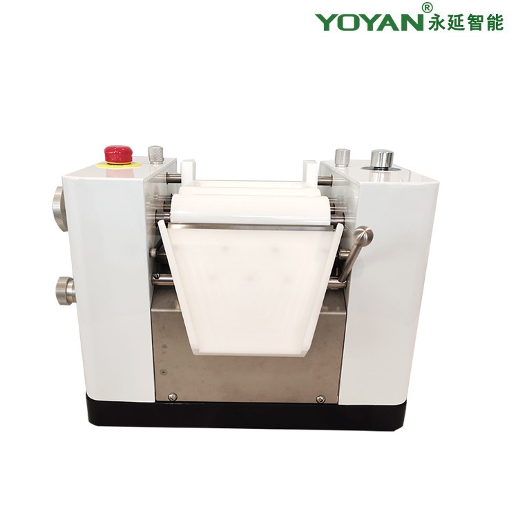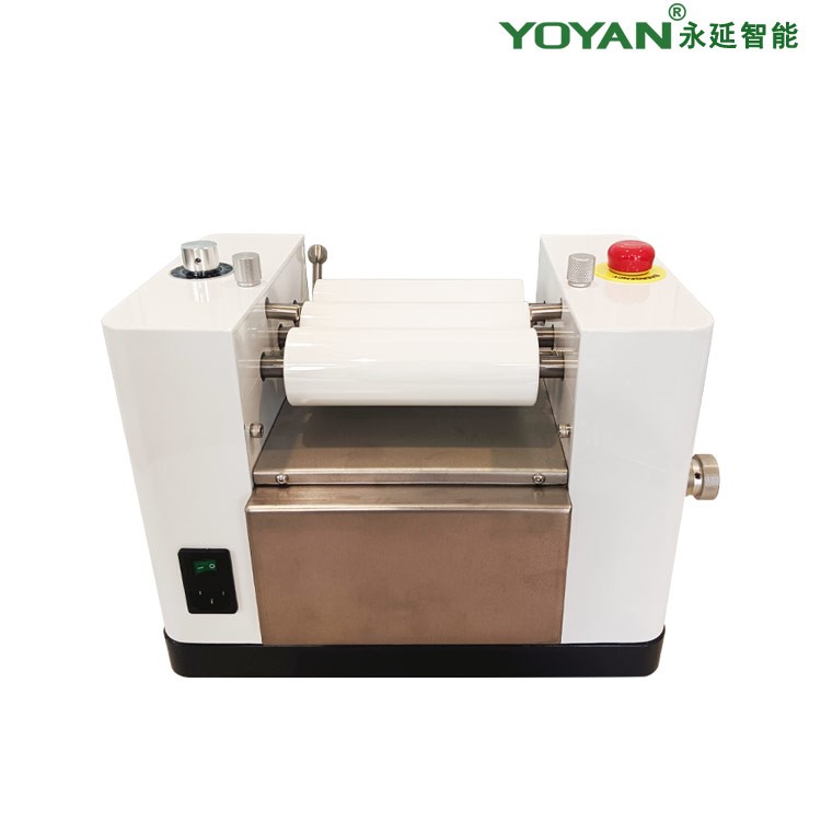 YTR-50型三辊机(又称三辊研磨机)为基本实验室型三辊机。特别针对处理量相对较少,精度要求相对较低的客户而进行的超小型研磨设备。结构设计简单,尺寸较小,体积较轻,采用无级调速控制流量,机械方式调节间距。